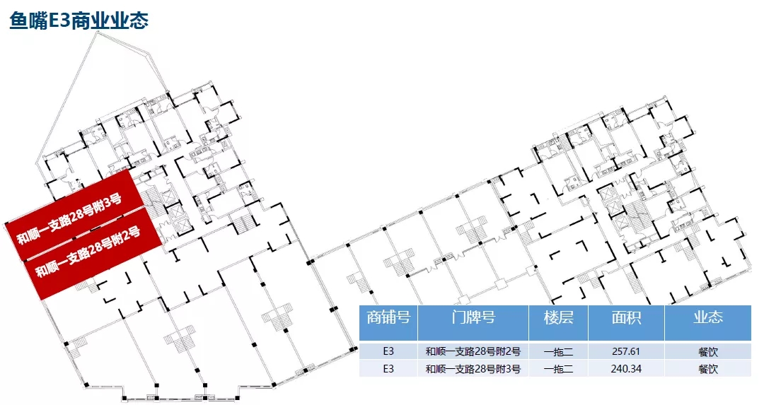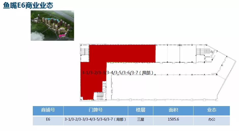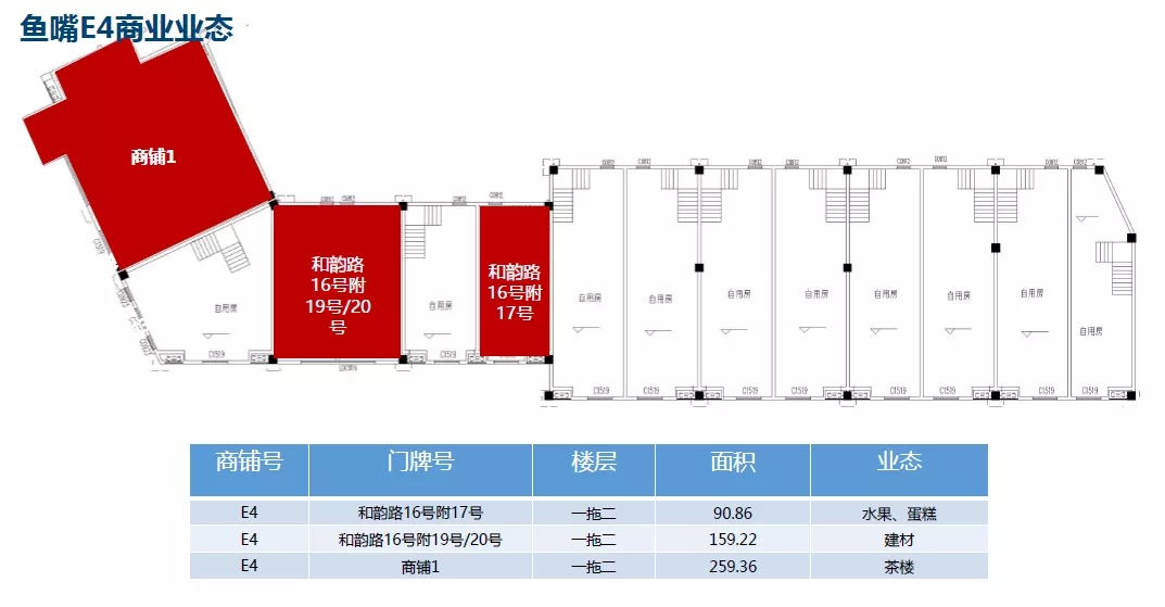 (二)魚嘴福居:E3號樓局部,E4號樓局部,E6號樓局部招商面積2512.99平米.