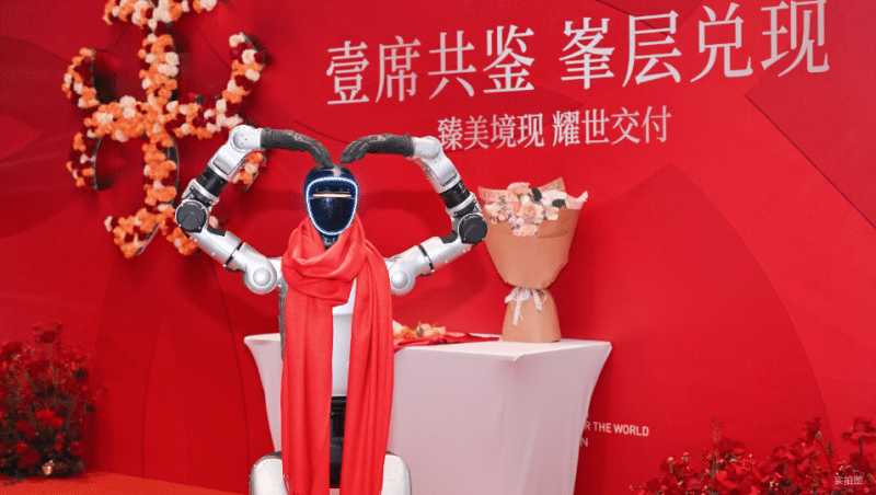 交付當日,項目現場被悉心營造為一場融合藝術、科技與人文關懷的歸家盛典。悠揚的小提琴與豎琴演奏縈繞其間,為交房儀式平添雅致氛圍;智能機器人獻上鮮花問候,預示未來智慧生活場景;由花藝大師精心構筑的歸家花境與藝術長廊,讓業主從踏入社區的第一步便感受到盎然生機與美學意趣。